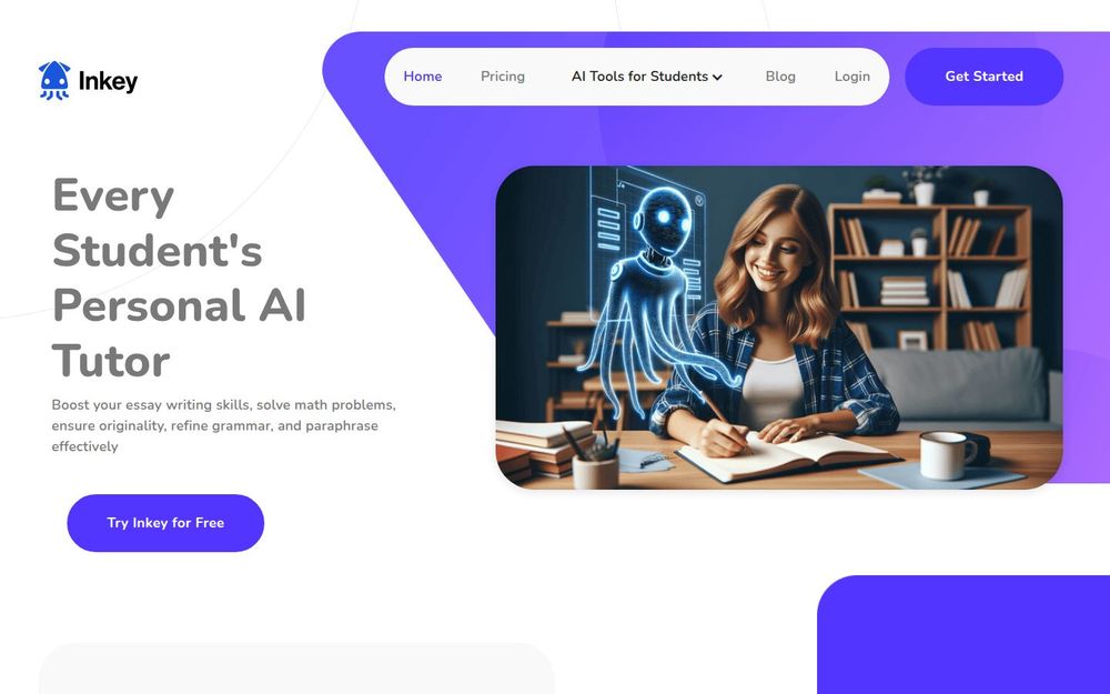 Inkey.ai 是一个专为学生打造的 个人 AI 助教 平台,目标是帮助学生提升写作能力、解决数学问题、检查原创性并改进语法表达。平台集成了超过 30+ 种 AI 工具,覆盖从论文构思、段落生成、改写到抄袭检测与 AI 内容识别等多个学习环节。网站强调易用性与成本效益,支持免费试用,适合需要快速产出或反复修改草稿的学生群体。