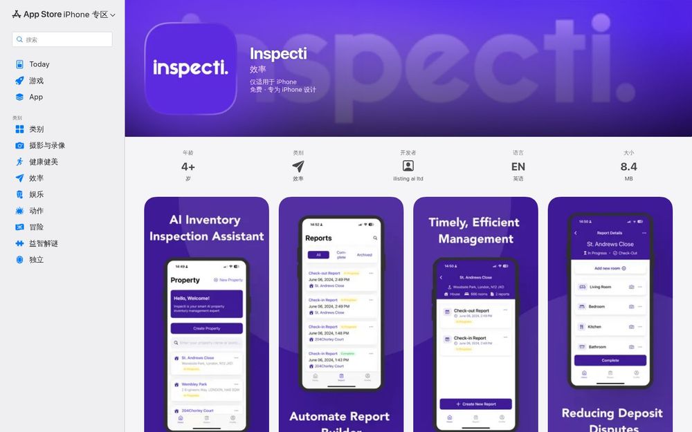 Inspecti 是由 iListing AI Ltd 推出的移动端效率工具,专为 iPhone 设备设计,利用 人工智能(AI)图像分析 将拍摄的照片转化为结构化的库存或检验报表。应用注重提高工作效率、降低人为偏差与成本,并支持远程检验与透明化的建议输出,适用于物业管理、租赁检查、仓库盘点等场景。