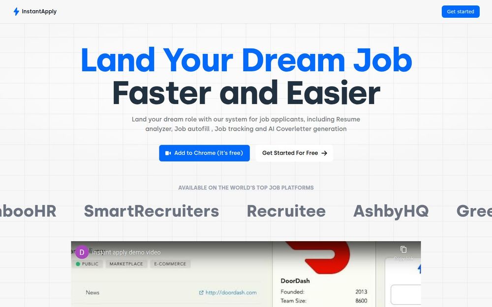 InstantApply 是一款面向现代求职者与招聘方的综合工具,旨在通过自动化和人工智能技术简化求职流程、提升投递命中率。该平台提供浏览器扩展与网页服务,支持与多家主流招聘系统和职位平台(如 Greenhouse、Lever、Workable 等)对接,帮助用户在申请环节节省时间并提升内容质量。