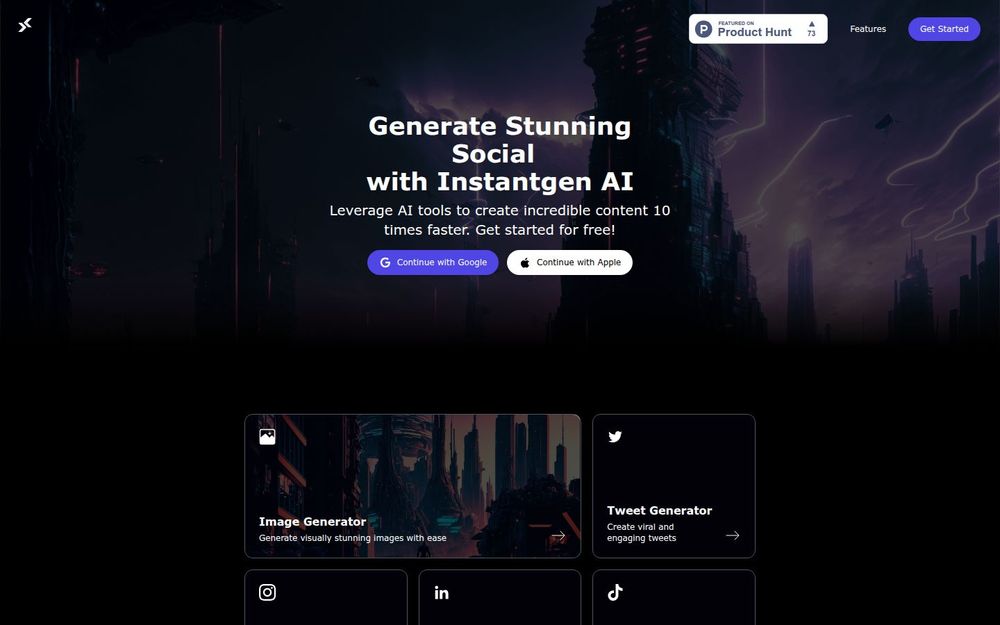 Instantgen 将视觉与文本生成能力整合到一个易用界面,适合需要快速产生多平台内容的个人与团队。其对接主流生成模型、提供平台专用模板和丰富示例,能显著降低内容制作门槛并提升效率。对于重视产出速度与跨平台一致性的用户,Instantgen 是一个高效的辅助工具。