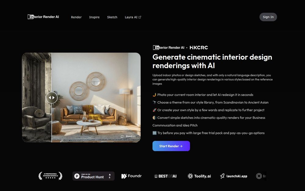 Interior Render AI 是一款专注于室内设计渲染的人工智能工具,旨在帮助用户快速将现有房间照片或草图转化为具有专业水准的渲染效果图。无论是设计师需要大量概念提案,还是普通用户想要预览改造效果,Interior Render AI 都提供了便捷且可定制的渲染流程,支持多种风格预设和自定义风格生成功能。