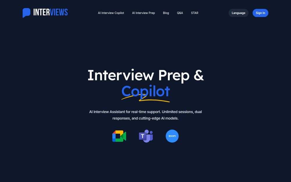 Interviews Chat 是一款集 实时面试助手(Copilot) 与 面试准备工具(Interview Prep) 于一体的 AI 平台,面向技术、行为和案例类面试提供全流程支持。它通过语音实时转录、模型建议和面试回放分析,帮助用户在真实或模拟面试中保持条理清晰和自信发挥。平台强调低延迟响应、模型可选性与隐私保护,适用于电话面试、视频面试和在线评测场景。