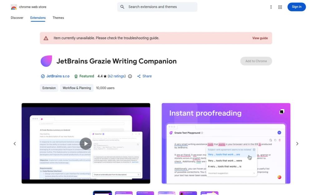JetBrains Grazie Writing Companion(简称 Grazie)是 JetBrains 提供的一款浏览器写作辅助扩展,旨在将智能写作功能直接带入浏览器环境,支持 Google Docs、Gmail、Slack(网页版)、Confluence 等常见网页应用。安装后,用户可以在撰写邮件、文档或社交媒体内容时获得实时的语言校正与智能建议,减少低级错误并提升表达清晰度与专业度。