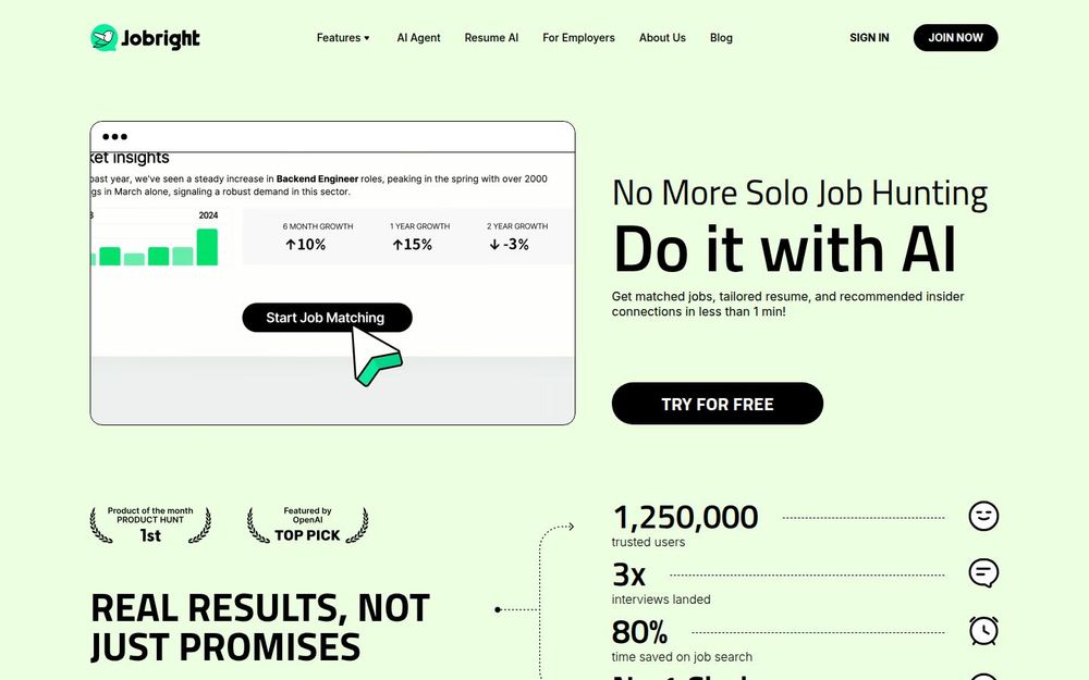 总体而言,Jobright 适合希望借助 AI 优化求职流程、提升简历命中率并通过内推扩大机会的职场人士和求职者。