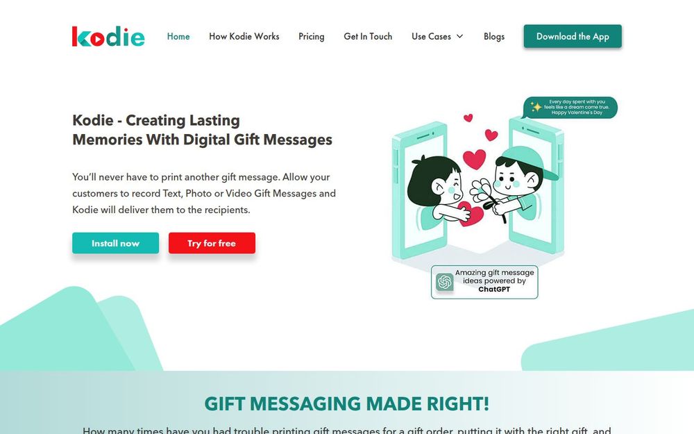 Kodie 适合希望提升礼品购物体验、减少仓库与履单环节负担并发掘礼物场景商业价值的品牌。通过数字留言,商家不仅能节省纸张和人工成本、增强环保形象,还能在顾客与收件人之间建立更深的情感联系,从而提高用户粘性与口碑传播。