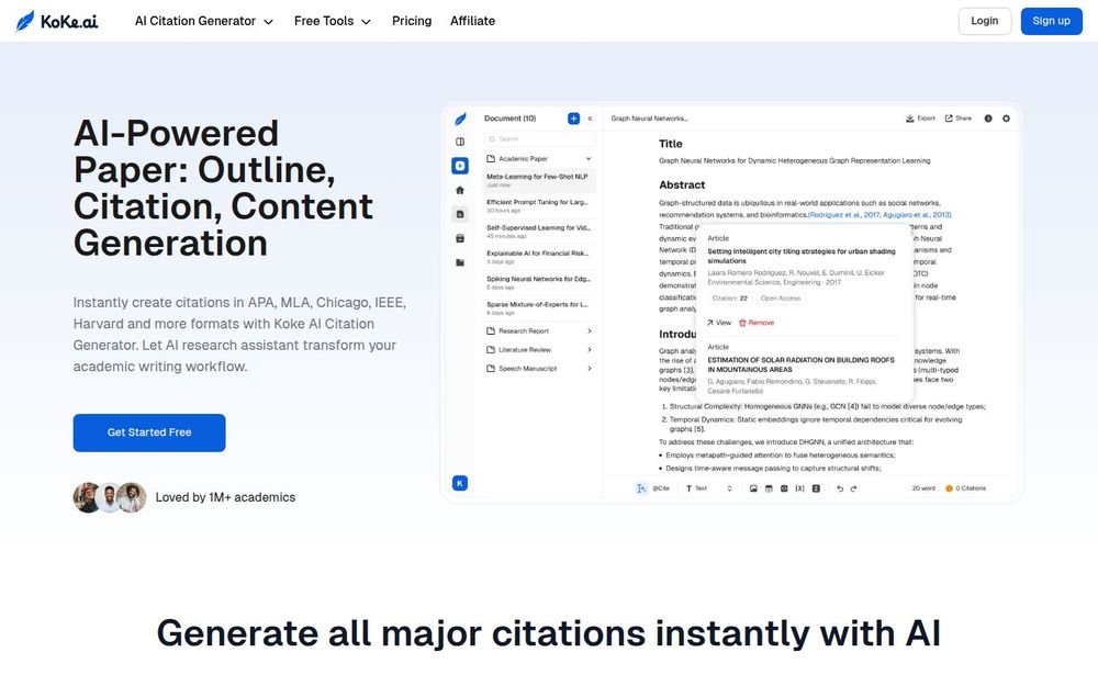 Koke AI 是一款面向学术写作与研究的 AI 驱动平台,旨在通过自动化工具提升写作效率并保证引用格式的准确性。平台核心包括AI 引用生成器、AI 提纲生成器与AI 研究助理,并配套论文库、语义检索、PDF 提取与写作润色功能,覆盖从资料检索到最终论文排版的多个环节。