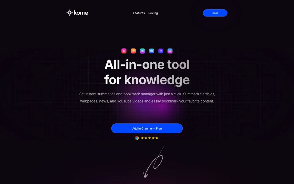 Kome 是一款集 AI 摘要、书签管理 与 智能撰写 于一体的浏览器扩展,目标是让用户在上网时更快获取关键信息并高效组织收藏内容。通过在浏览器内直接操作,Kome 能在不离开页面的情况下提取要点、保存资源并生成可复用的文本草稿,适用于阅读、研究与内容创作场景。