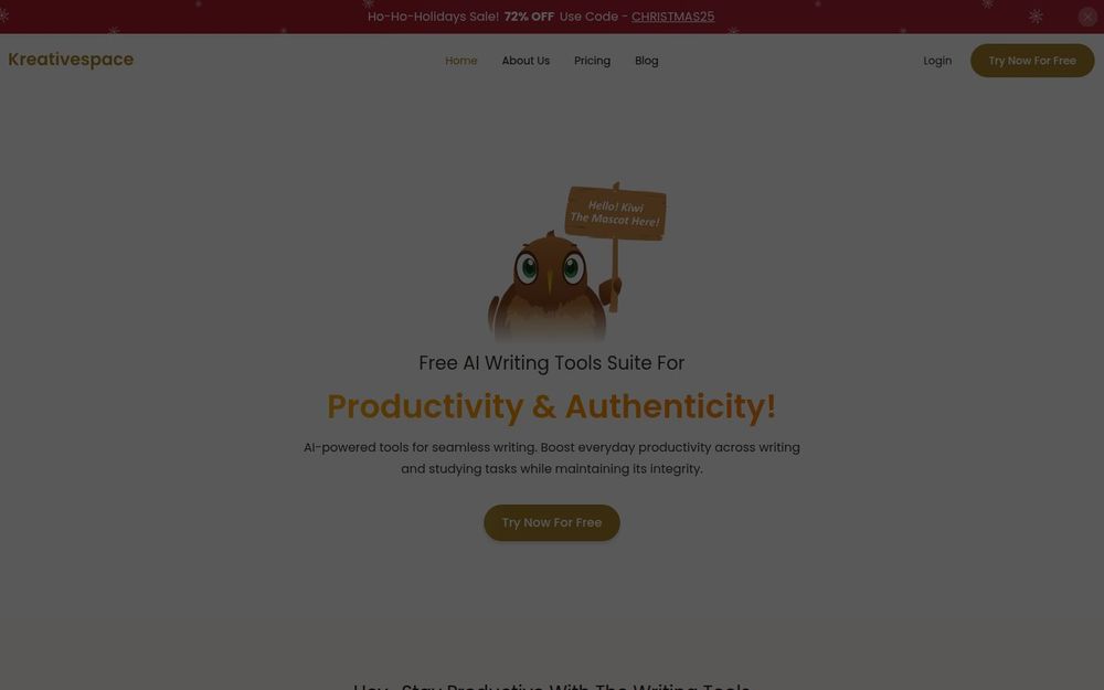 Kreativespace 是由 Avinyaa EdTech 推出的完整 AI 写作解决方案,面向需要高效率与高保真写作体验的学生、编辑、研究人员与创作者。平台集合了多种写作辅助工具,既能加速写作流程,也能帮助用户保持内容原创性与学术规范。支持浏览器扩展(Chrome/Edge/Firefox)与移动应用(iOS/Android),方便在不同场景中无缝使用。