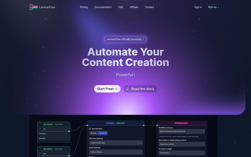 LaminarFlow 将内容自动化从概念变为可执行的产品,凭借强大的节点体系、WordPress 集成与灵活的调度与数据接入能力,为内容运营提供高效可扩展的解决方案。