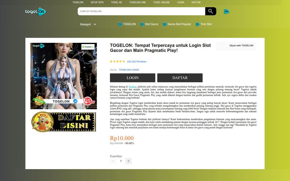 TOGELON 是在 learnexai.com 上展示的一个在线博彩/电子游戏品牌页面,主打“slot gacor”(高热度/高回报老虎机)与 Pragmatic Play 等供应商的热门游戏。页面以快速登录/注册、丰富的游戏选择与全天候客服为卖点,旨在为想体验电子老虎机与数字博彩的用户提供便捷入口与服务说明。此外,页面也包含大量商品与分类链接,表明站点在内容上兼具游戏平台宣传与电商类目录的功能。