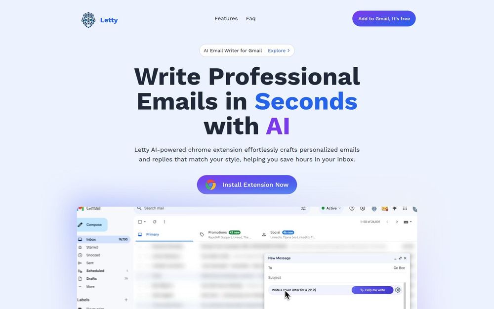 Letty 是一款专为 Gmail 设计的 AI 邮件助手 Chrome 扩展,旨在帮助个人与团队快速撰写和回复邮件。通过分析邮件上下文与用户风格,Letty 可以自动生成符合语气与目的的邮件草稿,减少在收件箱中花费的时间,让用户把精力放回更重要的工作上。