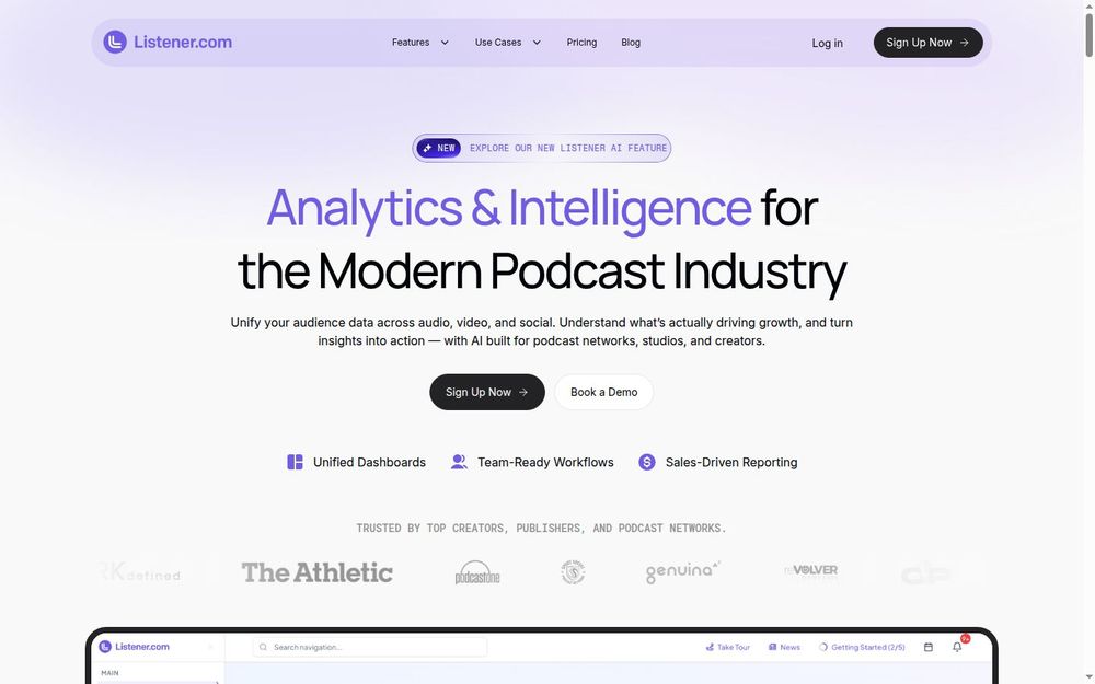 Listener 是为播客生态构建的智能分析层,旨在将来自 Apple、Spotify、YouTube 及各大社交平台的数据统一到一个受信任的仪表盘中。平台以每日刷新、隐私安全的连接与可共享的实时视图为基础,帮助团队快速做出决策、生成销售级报告并推动营收增长。无论是单个创作者、代理机构,还是跨国播客网络,Listener 都提供相应的功能与服务层级。