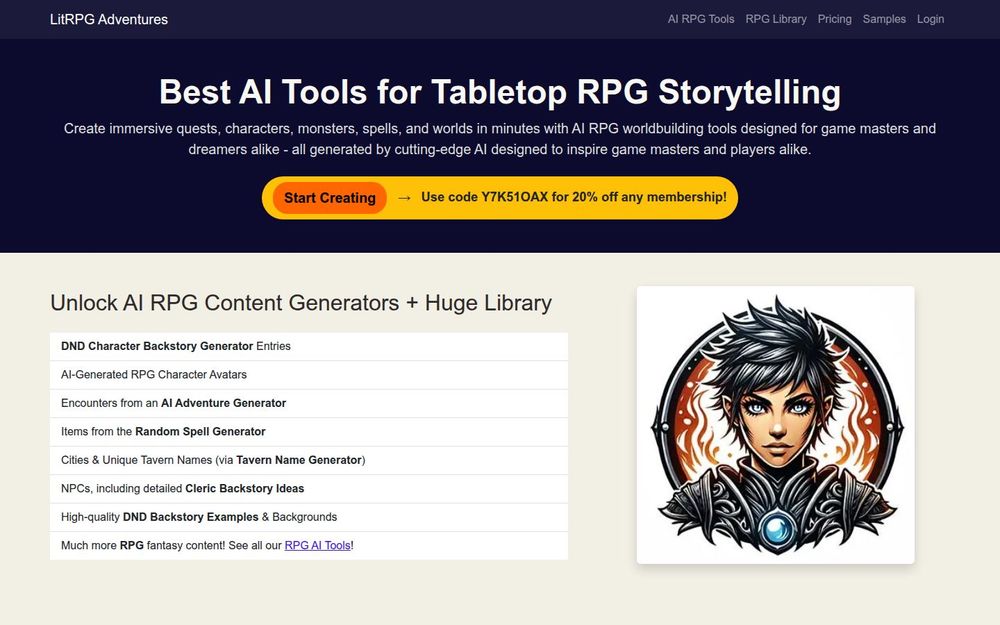 LitRPG Adventures 是一个面向桌面角色扮演游戏(TTRPG)世界构建与内容生成的在线平台,结合了**先进的生成式 AI(如 GPT-4o、DALLE3)**与程序化生成技术,提供即时可用的剧情、角色、地点与物品创作工具。平台包含大量预制与社区贡献的素材,并提供商业许可选项,方便独立游戏设计师、作者与开发者将内容用于商业项目。