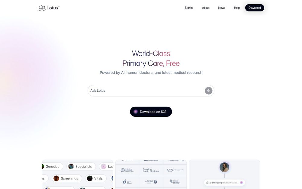 Lotus AI 以“连续、连通、以用户为中心”的理念重构初级医疗体验,结合AI 推理、临床专家与最新研究,提供从信息整合、智能建议到医生复核与处方执行的一体化服务。它适合追求便利、循证和长期健康管理的用户,同时通过透明的研究与合规实践构建可信赖的医疗平台。