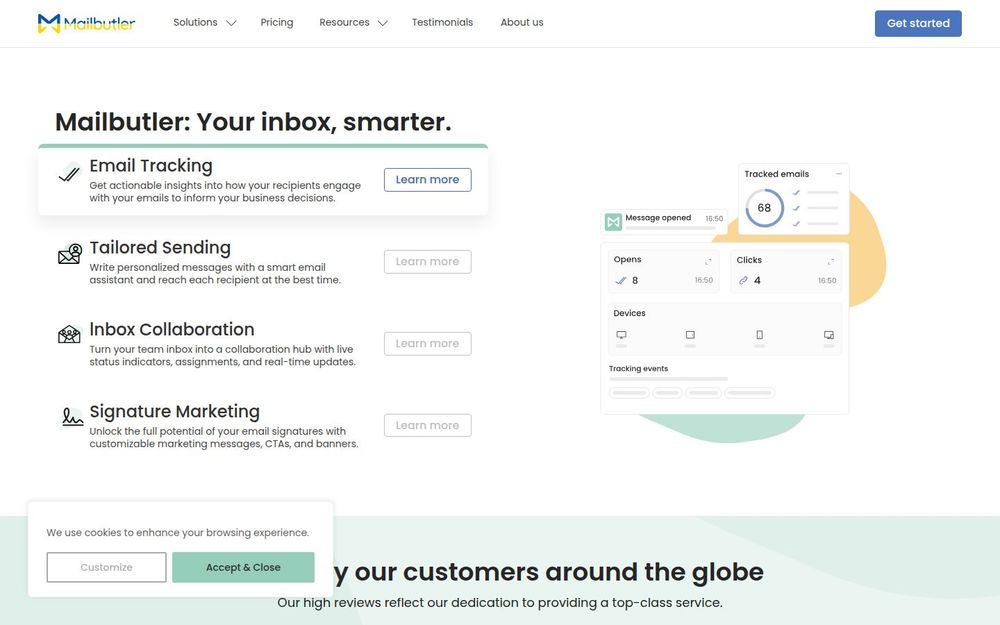 Mailbutler 是一款旨在让电子邮件更智能、更高效的扩展工具,支持 Apple Mail、Gmail 和 Outlook 三大主流邮箱客户端。无论是个人用户还是企业团队,Mailbutler 都通过一系列附加功能把邮件变成可衡量、可协作、可营销的工作载体,从而减少重复操作、提升回应效率并促进团队协作。