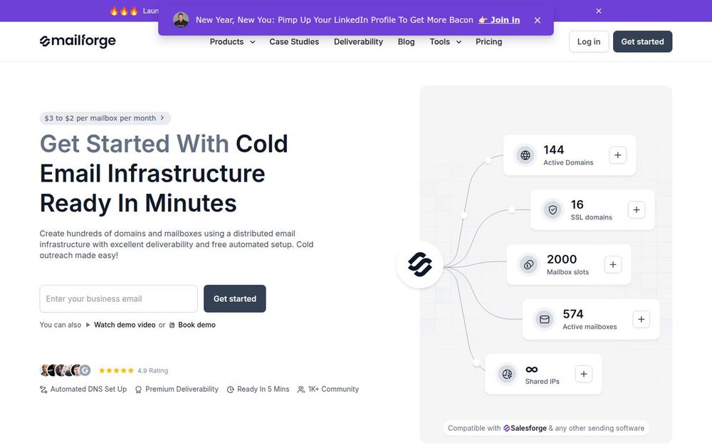 如果你的团队依赖冷邮件开展外联并且希望缩短从策略到执行的时间,Mailforge 提供了一个专注于可交付性、可扩展性与易用性的解决方案。它显著减少了配置与维护成本(对比常规企业邮箱每月成本更低),并通过自动化与批量操作提升运维效率。适合需同时管理大量邮箱、关注送达率并希望与现有销售栈无缝集成的组织。