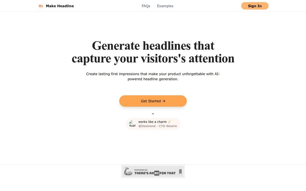 Make Headline 适合希望快速提升首屏表现的产品团队和内容创作者。它用AI 自动化替代重复的文案试错流程,节省时间并扩大创意选项。对于资源有限的独立开发者或小型团队,这类工具能显著降低营销文案制作门槛,使非专业文案人员也能产出专业水准的标题。