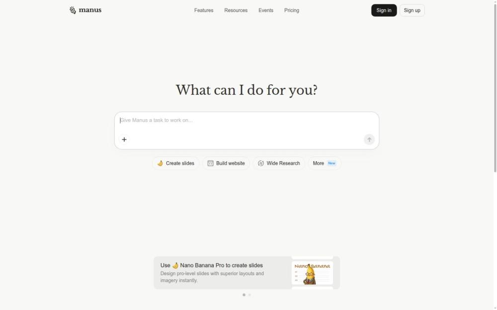 Manus 适合需要快速产出演示文稿、进行深度资料调研或提升日常写作效率的个人与团队。其优势在于将多种 AI 工具整合到一个统一平台,并提供企业级集成能力(如 API 与 Slack),便于扩展到现有工作流中。若你重视可组合的 AI 功能、团队协作与生产效率提升,Manus 是值得一试的解决方案。