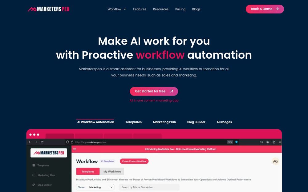 MarketersPen 是一款为市场与销售团队设计的 AI 助手,定位为“主动式工作流自动化(Proactive workflow automation)”的平台。它把内容创作、社媒规划、博客写作与工作流自动化整合到同一套工具中,目标是帮助非技术用户通过AI 驱动的模板与自动化快速完成日常营销任务,节省时间并提升产出质量。