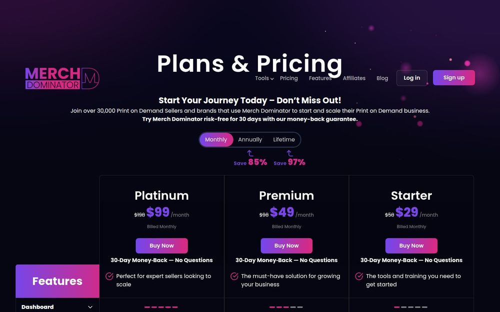Merch Dominator 适合需要以数据驱动快速扩展 POD 业务的用户:它把实时市场数据、批量抓取能力、AI 列表生成与商标保护融合在同一平台,能显著节省调研时间并提高选品与上架效率。对于重视规模化与系统化运营的卖家,平台的高级方案与扩展功能能提供明显助益。