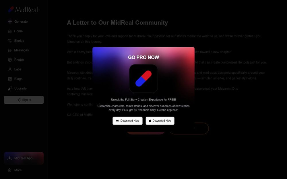 总体而言,MidReal 曾作为一款侧重 AI 创作与互动叙事的平台,为创作者提供便捷的文本与图像生成工具;在产品策略调整下,用户应根据自身使用需求选择继续使用现有服务或迁移到 Macaron。