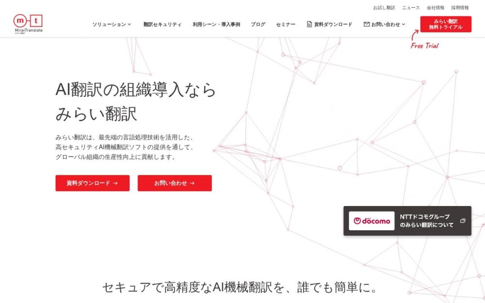 Mirai Translation 是一家专注于企业级AI机器翻译解决方案的服务提供商,旨在利用最先进的语言处理技术提升组织的跨语言沟通效率。产品线覆盖从全社级翻译平台到个人/团队版,以及实时语音翻译、视频字幕与API服务,强调高精度翻译与严格的安全合规,适用于对翻译质量和信息保护要求较高的行业场景。