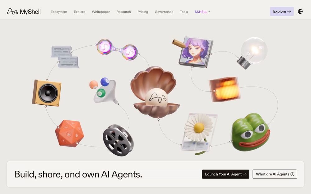 MyShell 是一个将 AI 与区块链相结合的消费者级平台,目标是让每个人都能成为 AI Agent 的创建者与受益者。平台通过 开源的 ShellAgent 框架、可视化的无代码编辑器和一个包含 1,200+ 小部件的生态,支持用户把想法快速转化为可部署的 AI Agent。MyShell 提供从图像生成、语音合成、视频理解到在线检索和代码执行的广泛能力,同时通过 Marketplace 与代币激励体系实现创作者激励与收益分配。