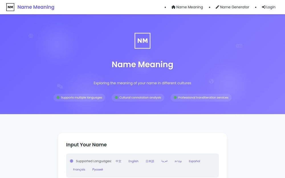 Name Meaning(中文可称“姓名含义”)是一个专注于姓名含义、发音与跨文化解析的在线工具。它结合人工智能与语言学知识,为用户提供多语言的姓名翻译、文化背景说明和发音指导,帮助个人、教师或家庭理解姓名在不同文化中的象征与适用性。
