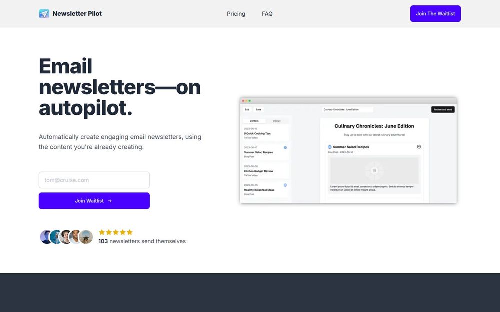 如果你是内容创作者、独立记者、博客作者或小型团队,且希望在不增加大量工作量的情况下维持或提升读者触达频率,Newsletter Pilot 提供了一个以 AI 驱动的省时方案。它适合想要把已有内容最大化利用、提升订阅转化并自动化日常邮件发送流程的用户。对于经常因“没有时间写邮件”而中断刊发的人来说,这个平台能显著降低门槛,让持续发布变得可行且可扩展。