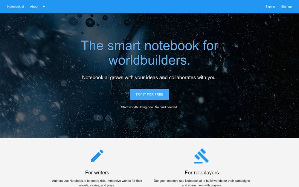 Notebook.ai 是一款专为世界构建(worldbuilding)与小说创作设计的在线笔记与设定管理平台。它将世界的各个要素——从宇宙/世界(Universe)、角色、地点到物品、生物、时代线等——以结构化页面保存,形成一个可搜索、可交叉引用、可备份的创作数据库。界面强调易用与模块化,支持免费试用与付费升级,适合独立作家、桌游主持人和协作团队使用。