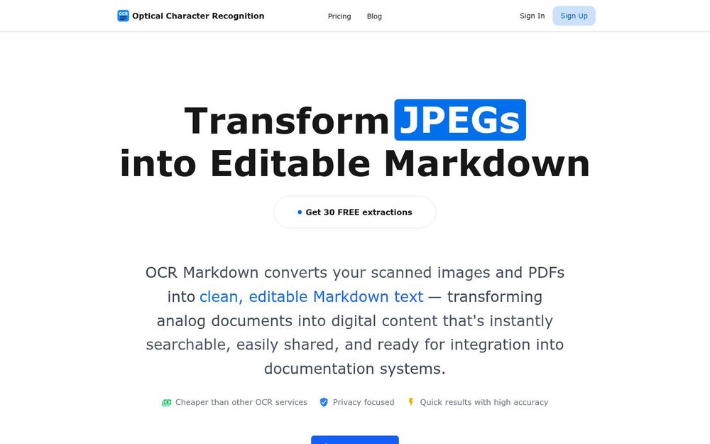 OCR Markdown 适合需要将大量纸质资料数字化并以 Markdown 格式维护的个人与团队。它结合了隐私优先的本地识别与高精度的 AI 增强处理,既能满足简单快速的单次转换需求,也能应对复杂的 PDF、表格与数学公式识别需求。清晰的定价方案、免费试用额度以及对多语言与常见文件类型的支持,使其在文档处理和知识管理场景中具有很高的实用性。