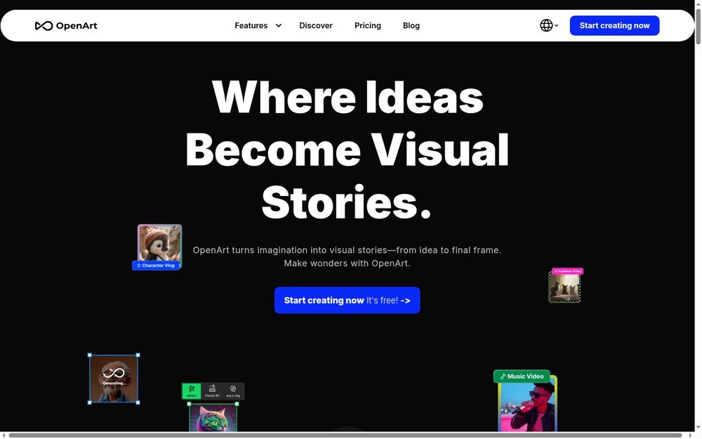 - 快速生成视觉内容: OpenArt 允许用户在几分钟内将想法转化为视频或图像,极大地提高了创作效率。