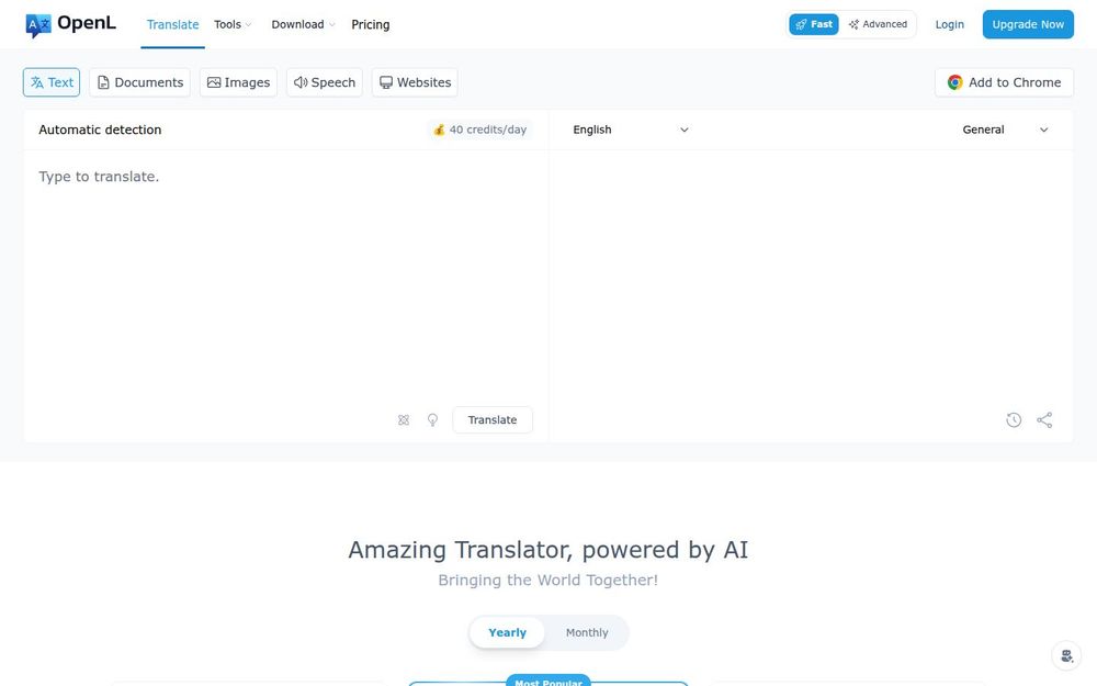 OpenL 是一款面向全球用户的 AI 驱动翻译工具,致力于在跨语言交流中提供接近母语水平的翻译结果。其核心定位为“快速、准确、支持多格式”,可用于即时文本翻译、文档翻译(含扫描 PDF)、图片与语音翻译,以及整站翻译。OpenL 同时提供浏览器扩展,方便在网页上直接选取文本进行即时翻译,适合日常浏览、学术研究和商业文档处理。