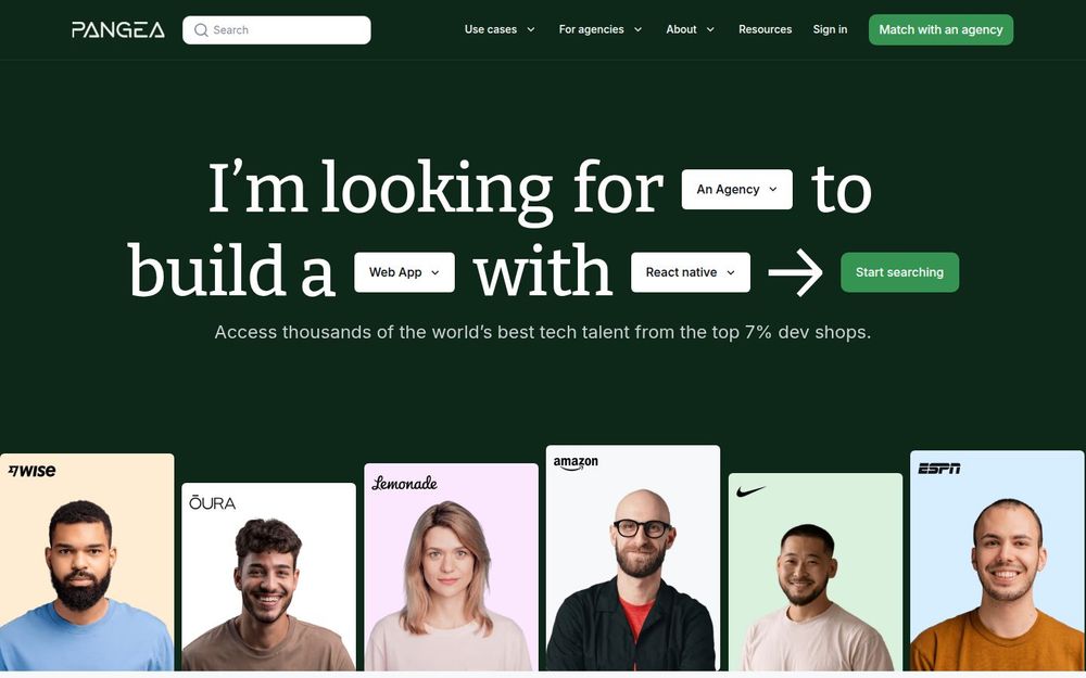 Pangea(Pangea.ai)是一个面向需要高质量工程与产品能力的企业与创业团队的人才与代理机构市场。平台通过系统化的尽职调查和人工复核,将全球范围内的优质开发机构、产品经理、设计师与数据科学家纳入私有网络,为客户提供快速、可控且高质量的外包与用工解决方案。Pangea 的定位是“把复杂且分散的人才市场变得简单可控”,并主张在72小时内向客户交付候选名单。