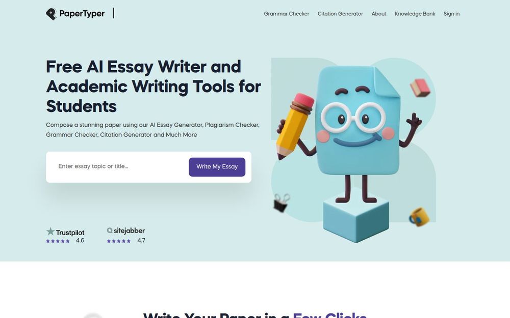PaperTyper 是一个以学术写作为核心的在线写作平台,结合了AI 生成器与多种辅助工具,旨在为学生提供从选题、生成、校对到引用的一站式写作解决方案。网站宣称由具有学术和写作背景的专业团队参与开发,工具既可生成示例文章,也可提供细致的语法与查重报告,便于用户在使用生成内容的同时提升写作能力和学术规范意识。
