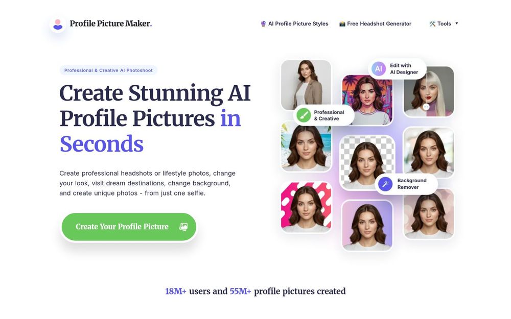 PFPMaker 是一款专注于个人形象建设的 AI 头像生成器,旨在用更少的操作生成更专业的个人头像。该平台集合了从基础的背景移除、模版化头像生成到高级的 AI Photoshoot(艺术化换装、风格切换)、AI Headshots(商务职业照增强)和对话式 AI 编辑器等多种工具,支持免费与付费两类服务。无论是需要为 LinkedIn 提升职业形象,还是为社交媒体打造个性化风格,PFPMaker 都提供了快速、可控且可批量产出的解决方案。