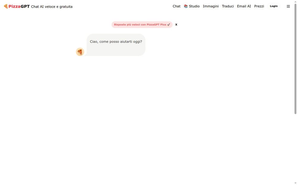 PizzaGPT 是一个以意大利语用户为主、强调“快速且免费”体验的 AI 服务平台,定位为对标 ChatGPT 的本地化替代方案。网站界面简洁直观,顶部导航包含 Chat、Studio(学习/研究模式)、Immagini(图像生成)、Traduci(翻译)、Email AI(邮件助手)与 Prezzi(价格)等模块,用户可通过登录体验更多功能或付费选项。平台同时展示可选模型列表(例如 GPT-5、GPT-OSS、Llama 3.3、Qwen 3 等),支持用户根据需求选择不同的推理后端。