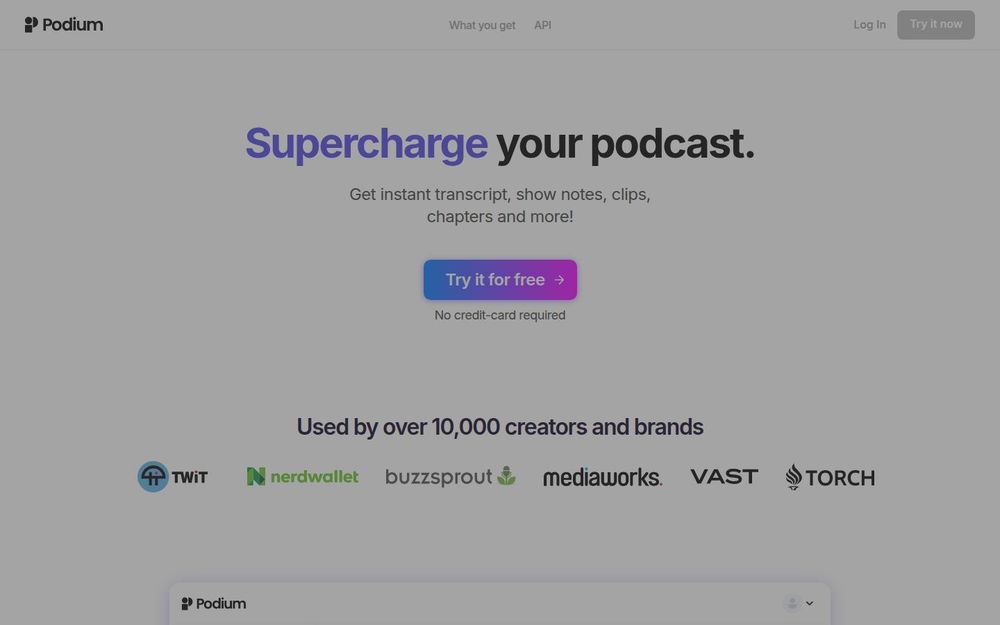 Podium 最适合想要把后期制作流程自动化、节省时间并提升推广效率的播客创作者和小型团队。它把转录、结构化内容生成与社媒剪辑整合为一体,能显著缩短从素材到发布的时间。即便在停运前夕,平台仍展示了对播客工作流自动化的深入思考与实用工具集合,适合作为参考和短期迁移工具。
