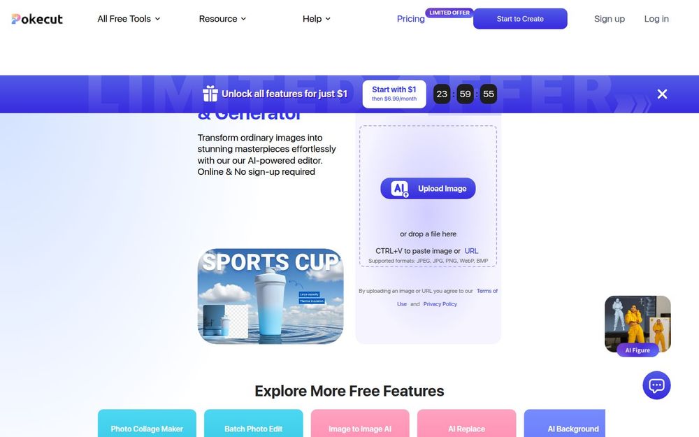 Pokecut 是一款面向大众与专业用户的在线 AI 照片编辑与图像生成平台,主打“免费工具+易上手”的体验。用户可在网页或移动端直接上传图片进行处理,也能通过文本提示生成多种风格的 AI 图像。平台强调速度与便捷,适合电商卖家、社交媒体内容创作者与摄影爱好者快速制作专业级图片。