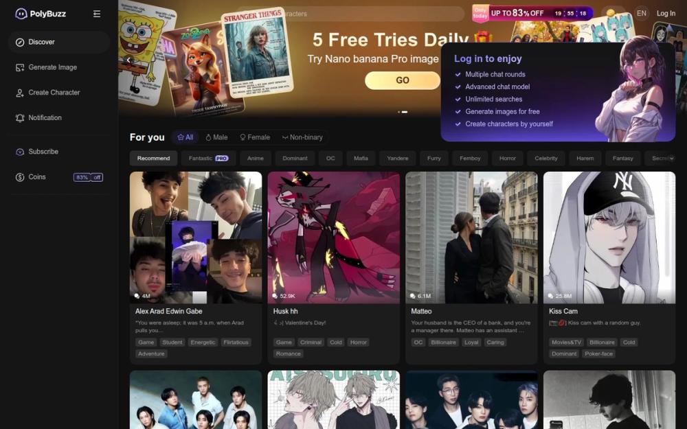 PolyBuzz 不仅仅是一个聊天平台,它为用户提供了一个创造和探索的空间。无论你是想要与 AI 角色建立情感联系,还是希望通过角色扮演来放松自己,PolyBuzz 都能为你提供丰富的体验。通过其强大的功能和用户友好的界面,PolyBuzz 成为 AI 聊天和角色扮演的首选平台。