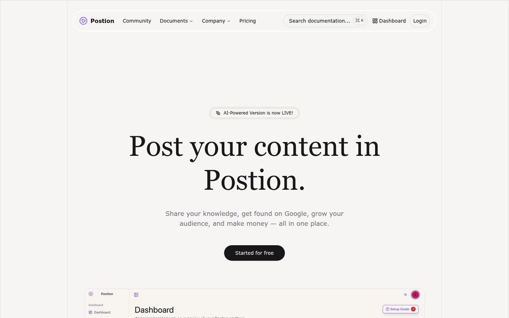 Postion 是一款面向独立创作者、写作者、课程制作者和小型媒体的一站式内容平台。它整合了内容创建、知识管理、粉丝运营与多渠道变现功能,强调通过 AI 助力与自动化工具降低创作门槛,让创作者更专注于内容本身并快速实现商业化。平台支持自定义域名、模板和 SEO 优化,适合希望建立个人品牌与长期收益渠道的内容生产者。