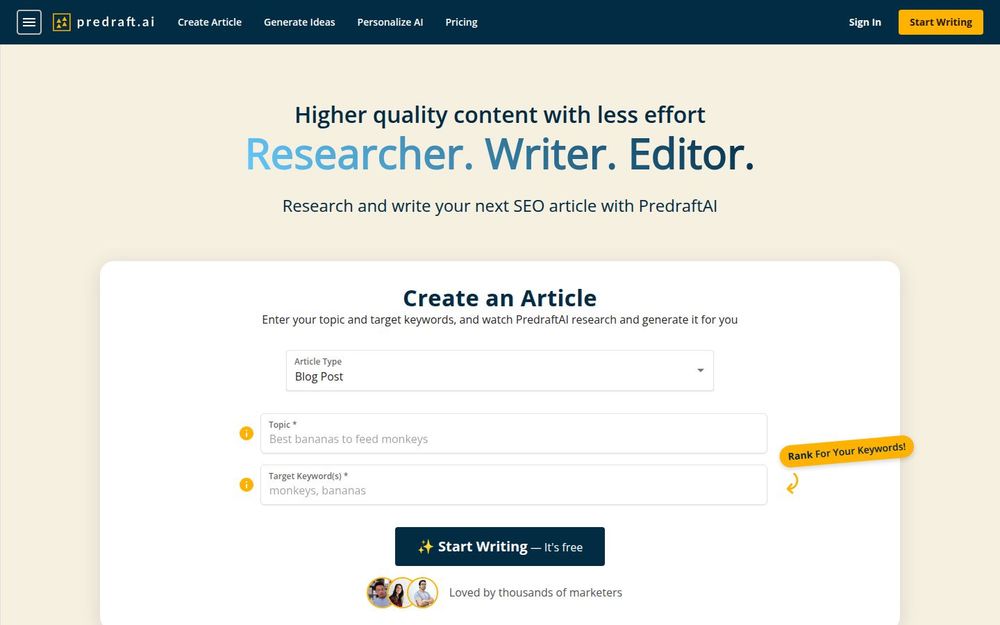 Predraft AI 是一款以 SEO 为核心的 AI 写作平台,强调实时研究、可控写作流程与高效发布,适合需要兼顾速度与质量的内容团队。无论是单人创作还是团队规模化生产,它都提供了从调研到发布的端到端支持,同时注重隐私与原创性保障。