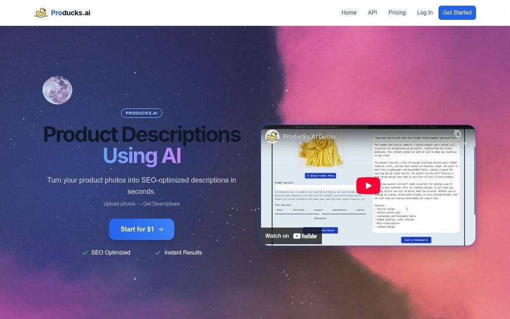如果你的目标是节省商品上架时间、提升文案一致性并增强 SEO 能见度,Producks.ai 提供了一套易用且经济的解决方案。其照片驱动的生成逻辑适合大量 SKU 管理的商家,而对接主流电商平台的能力则能将自动化成果无缝融入现有工作流,从而显著降低人力成本并提高上架速度。