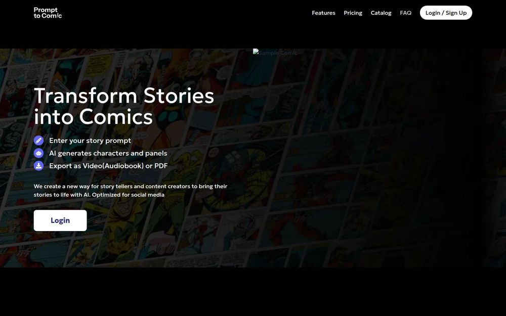 PromptToComic 是一款致力于把文字故事变成漫画和有声视频的 AI 工具,面向社交媒体内容创作者、儿童读物作者以及教育工作者。用户通过输入故事提示(prompt),即可让系统自动生成相应的角色、分镜与画面,并在需要时进行编辑与微调,最后导出为适合发布的短视频或 PDF 格式。该平台强调易用性、社交平台优化与创作效率,帮助创作者以更直观和有趣的方式讲述故事。