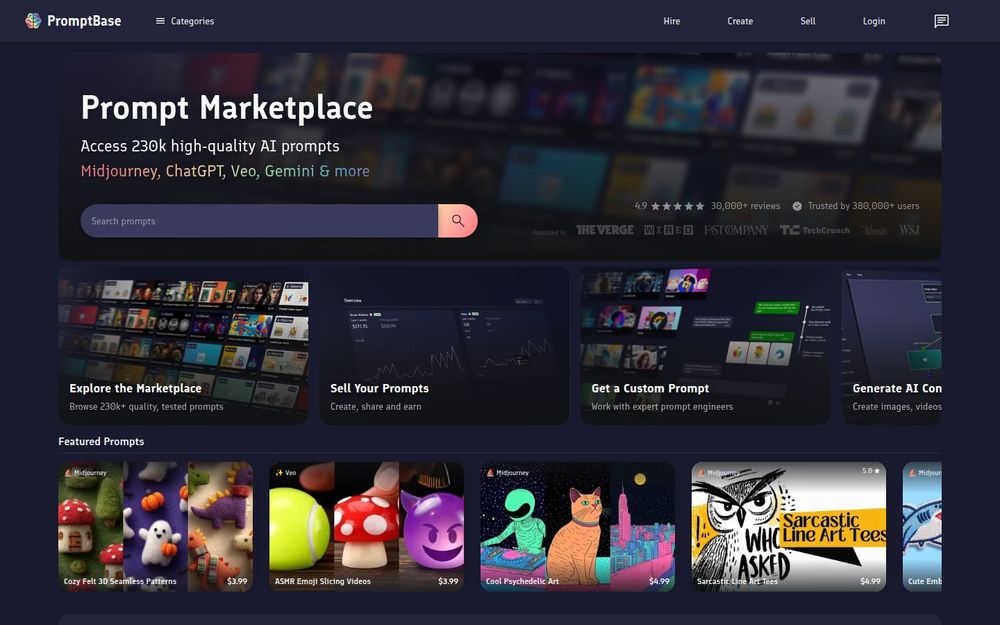 PromptBase 是一个专注于 AI 提示(prompts)交易与创作的在线市场,汇聚了大量由专家提示工程师打造的付费与免费提示。平台支持多种 AI 模型与生成类型(如图像、视频、文本),并提供从浏览、购买、出售到构建应用的全流程工具,旨在让普通用户也能快速获得高质量生成结果,同时为创作者提供变现渠道与流量入口。