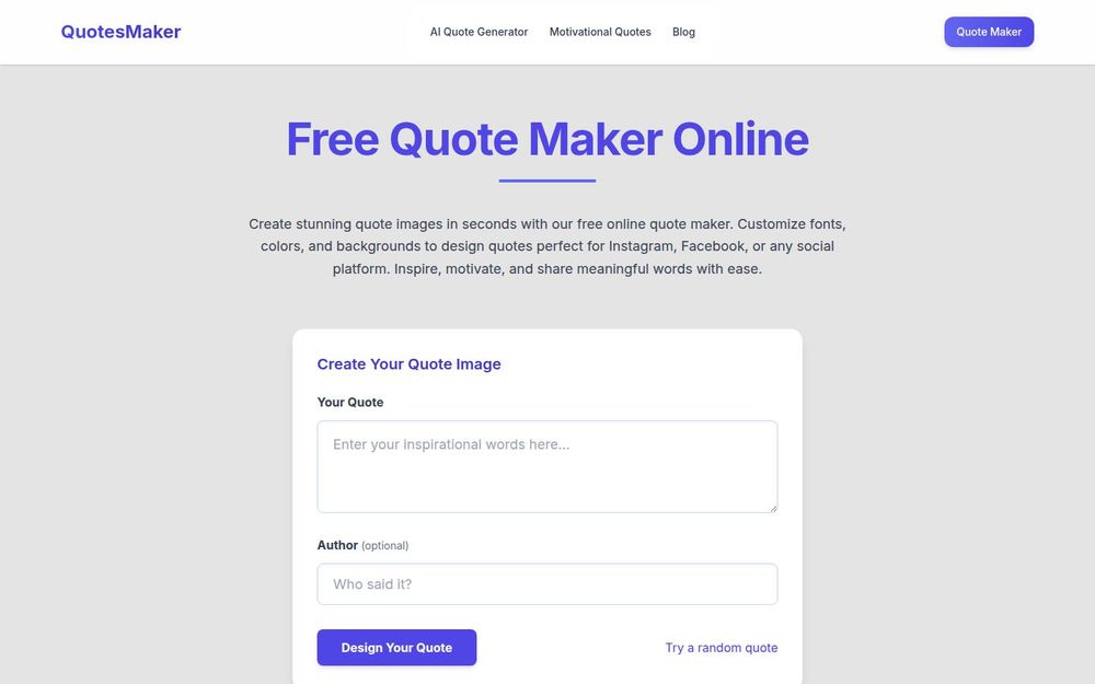 QuotesMaker 是一款面向大众的免费在线名言图片制作工具,强调快速、简洁和即时分享。无须账号即可使用,支持在桌面和移动设备上直接打开网页进行编辑,用户可以输入自定义名言或使用内置的 AI 随机生成器,并通过多种视觉样式快速导出图像文件。主要目标是帮助用户将文字信息转化为易于传播的视觉内容,用于社交平台、演示、博客及教育资料等场景。