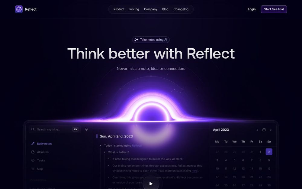 Reflect 是一款专注于让人“更好思考”的笔记与知识管理工具,旨在通过网络化的笔记体系和快速捕捉体验,帮助用户记录、连接和检索想法。它既适合日常零散记录,也支持深度写作与长期研究,通过反向链接把分散的笔记组织成可被检索和发现的思想网络。