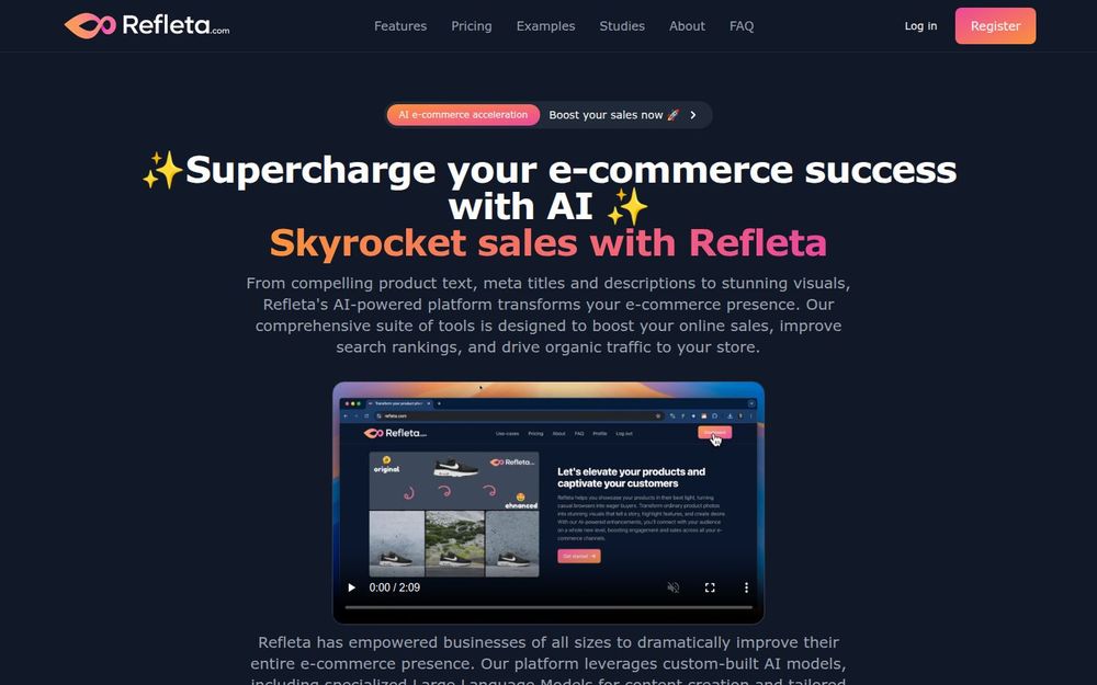 Refleta 是一个以 AI 驱动的电商加速平台,核心目标是通过图像增强和文案智能化来提升商品页面的吸引力与搜索可见性,从而增加点击率与销售转化。它集成了针对电商场景微调的语言模型(用于生成商品标题与描述)和专门的计算机视觉算法(用于图片优化与多版本生成),并以云端订阅服务的形式面向中小型商家与企业客户提供不同等级的使用计划。