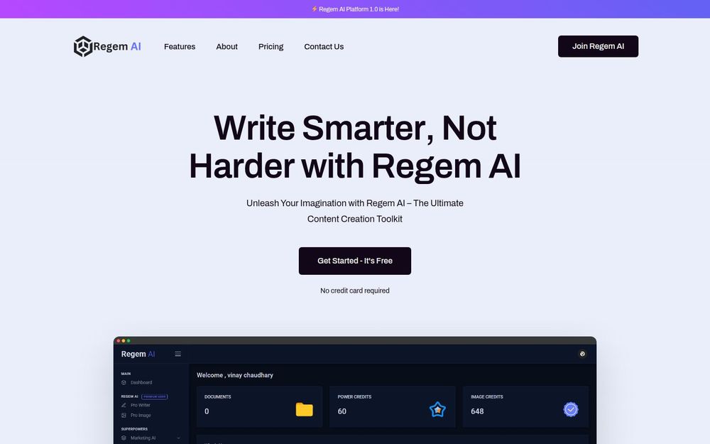 Regem AI 是一个整合式的内容创作平台,目标是通过 AI 助力用户快速生成高质量的文案与图像,覆盖博客、广告、邮件、品牌文案等多种场景。平台强调“Write Smarter, Not Harder”,通过一系列专用工具和可控参数,帮助创作者在更短时间内产出更专业的内容。