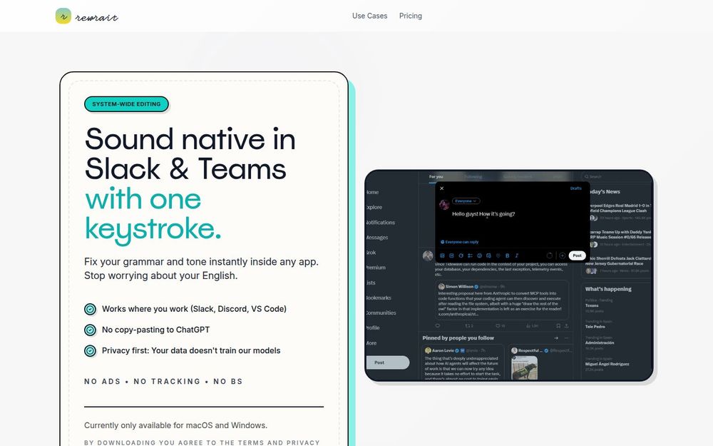 如果你经常在多个桌面应用间写作、需要快速把草稿变成可发布的文本,或在意内容隐私与企业合规,Rewrait 是一个值得尝试的选择。它通过原地增强的使用模式显著节省时间,提供灵活的自定义与企业级隐私控制,适合非母语写作者、产品与营销团队、以及追求高效写作流程的职业人士。